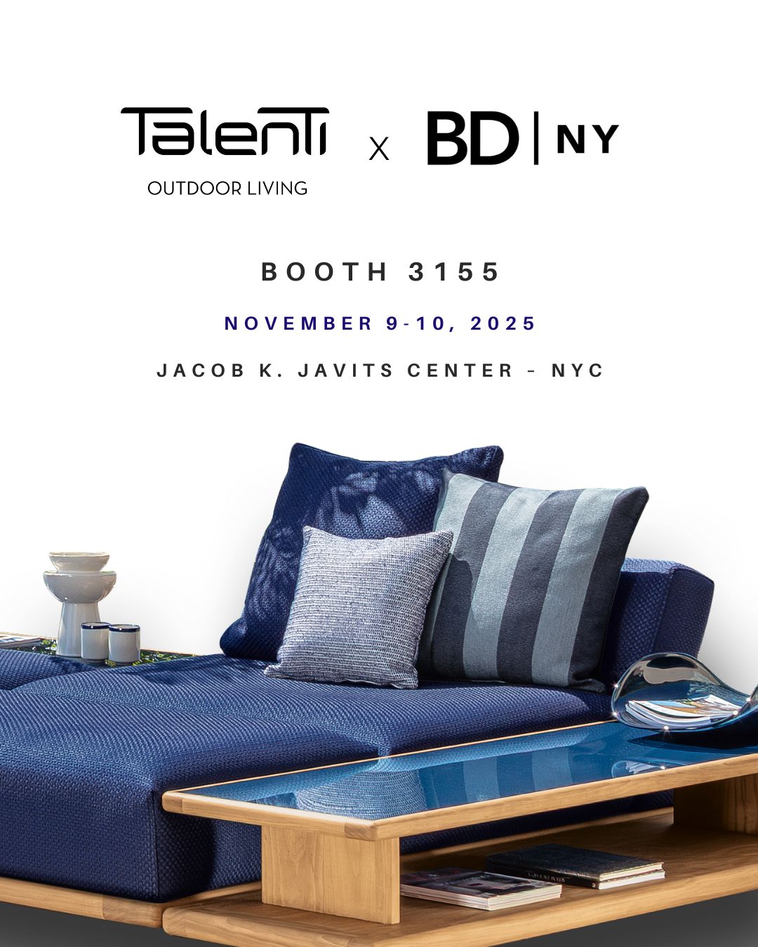 Nella prossima edizione di Boutique Design New York , Talenti presenterà in anteprima le novità outdoor del catalogo 2026, in un’esposizione di pregio, in cui sarà possibile scoprire la vasta gamma del brand dedicata al mondo dell’hospitality e del contract. Date: November 9th-10th, 2025Location: Javits Center, New York CityBooth: 3155