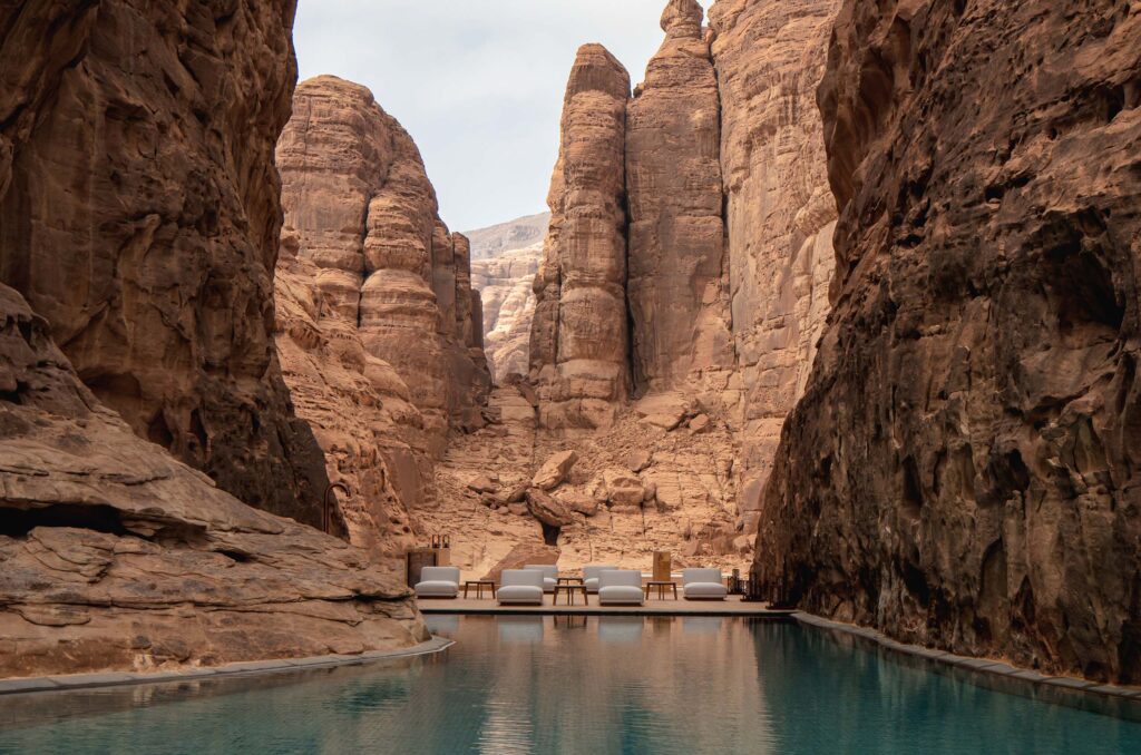 Per questa struttura Talenti ha realizzato l’arredamento della meravigliosa infinity pool nel mezzo del canyon con vista mozzafiato sul deserto rosso. All’ombra di pratici ombrelli della collezione Apollo, sono stati scelti i confortevoli ed eleganti lettini Argo in colorazione naturale, perfetti per godere el relax in questo ambiente dalle vibes fiabesche.