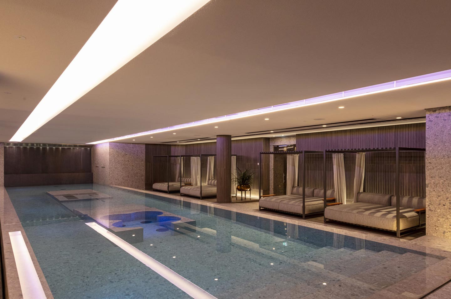 Il cuore pulsante dell’intera struttura è la SPA di 1.200 mq, dotata di una piscina di 20 metri, un’area in cui sono stati inseriti gli arredi dell’iconica collezione Casilda – firmata da Ramón Esteve -, una sintesi perfetta tra la razionalità delle geometrie e il potere avvolgente dei tessuti, dominati dai toni neutri. Con le loro linee essenziali, il Casilda Sunbed e il Casilda Daybed contribuiscono ad accrescere l’esclusività dell’atmosfera, rendendola ancora più magica. Nel contesto della SPA, all’interno del locale sauna, trovano spazio anche le forme sinuose e delicate del lettino Breez, disegnato da Karim Rashid, con le sue curve capaci di evocare istantaneamente intense sensazioni di benessere.