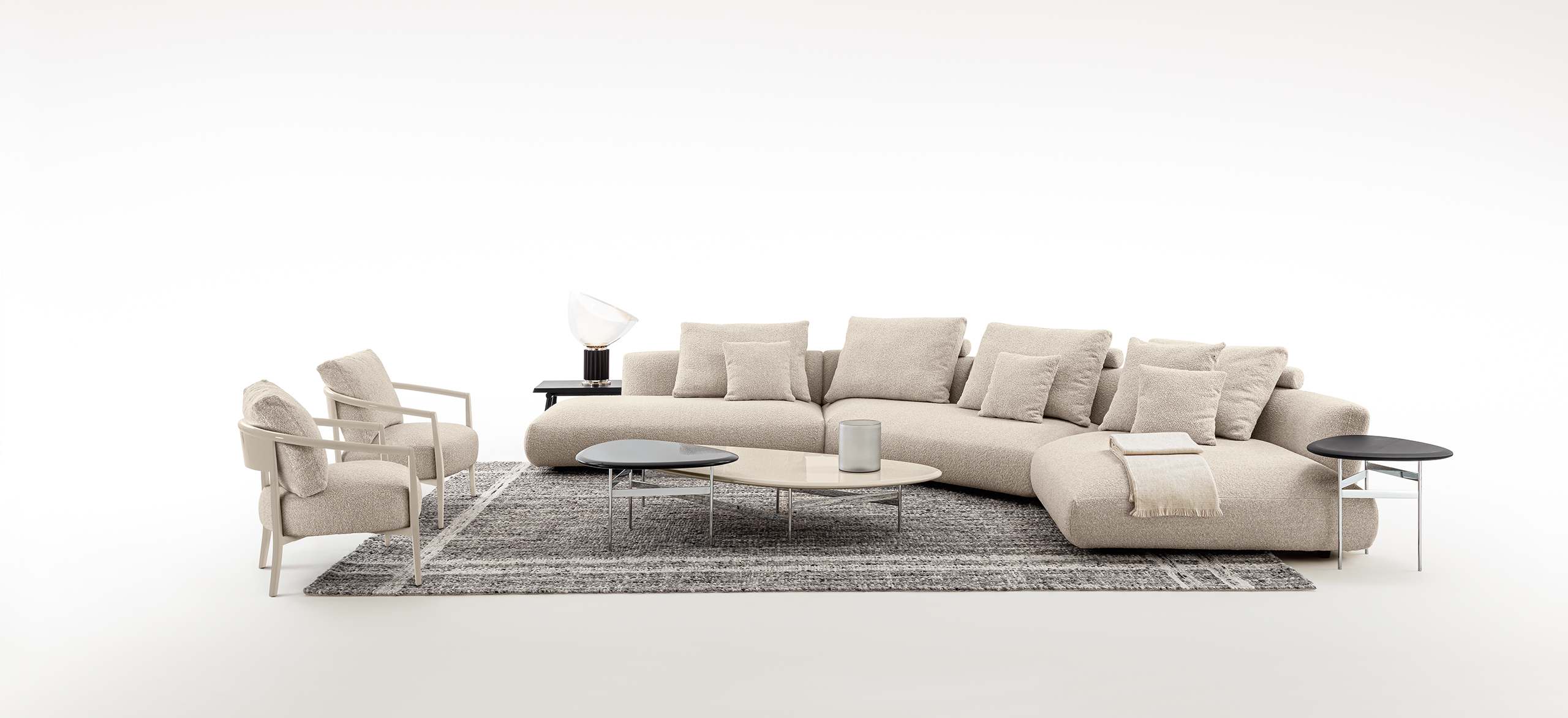 La collezione TAMASHI nasce da una visione di rigore e armonia, ispirata alla più autentica tradizione giapponese, dove ogni gesto progettuale è essenziale e carico di significato. Il nome, che in giapponese richiama lo spirito e l’anima, racconta un design silenzioso ma profondo, capace di trasmettere equilibrio e calma. TAMASHI è un imbottito a terra, proposto sia come monoblocco sia in configurazioni modulari, pensato per adattarsi con naturalezza allo spazio. L’inclinazione verso l’esterno delle cuscinature di schienale e bracciolo alleggerisce il volume, donando al divano una presenza visiva raffinata e contemporanea. Un progetto misurato e composto, che unisce disciplina formale e comfort, rendendo TAMASHI ideale anche per ambienti di dimensioni contenute.
