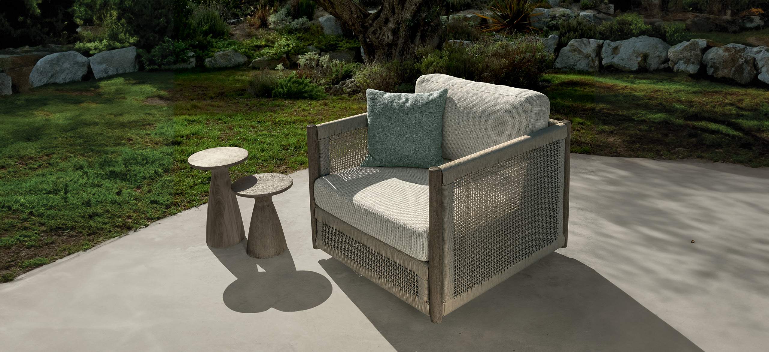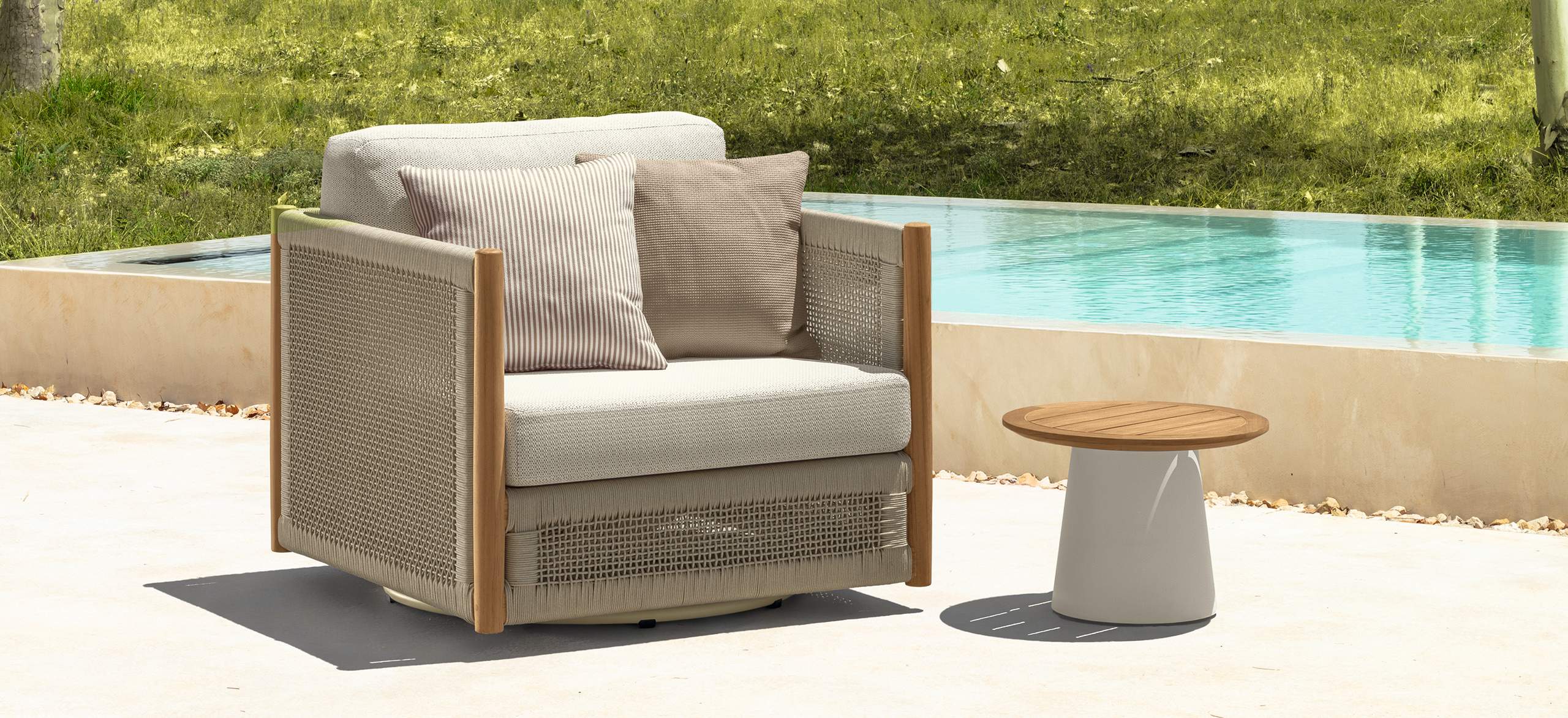 Ispirata alle calde sere d’estate, la collezione Dolcevita, con il suo design essenziale, nasce per donare freschezza a qualsiasi spazio outdoor. Leggera nelle forme e al contempo raffinata grazie alle finiture in teak e gres, è caratterizzata dal fitto intreccio di corde che fanno da file rouge alle composizioni living, dining e relax con una vasta scelta di cromie pastello per adattarsi ad ambienti anche molto diversi stilisticamente.