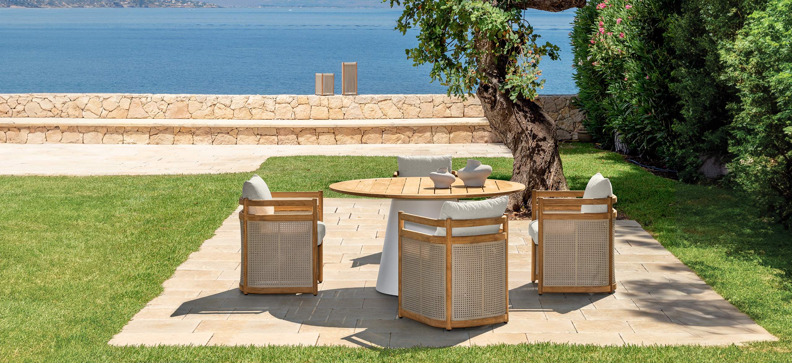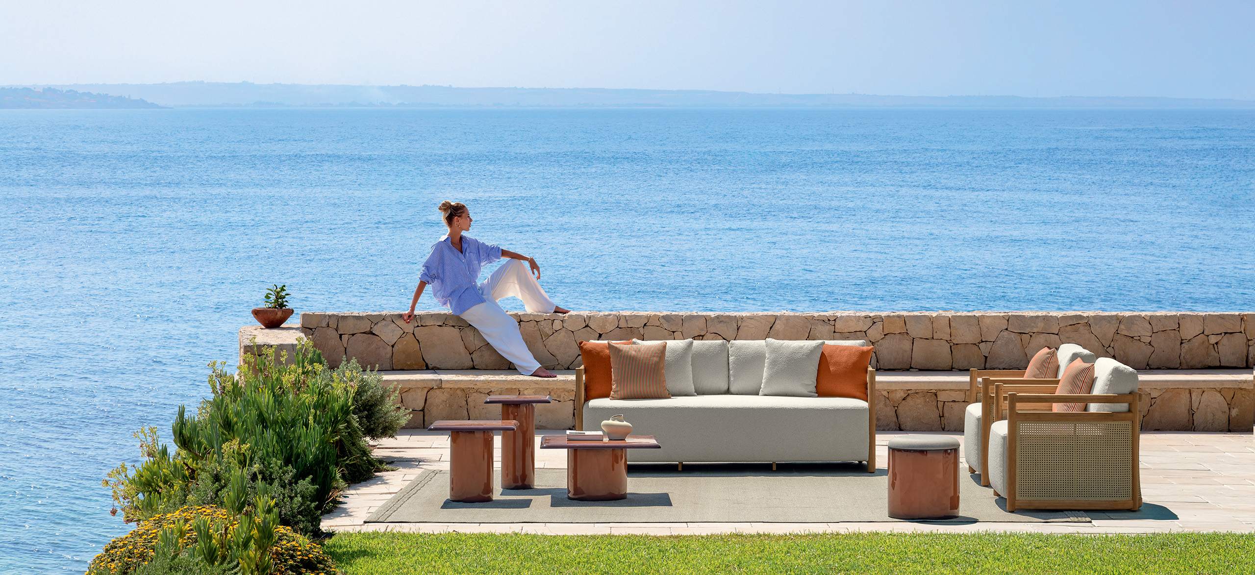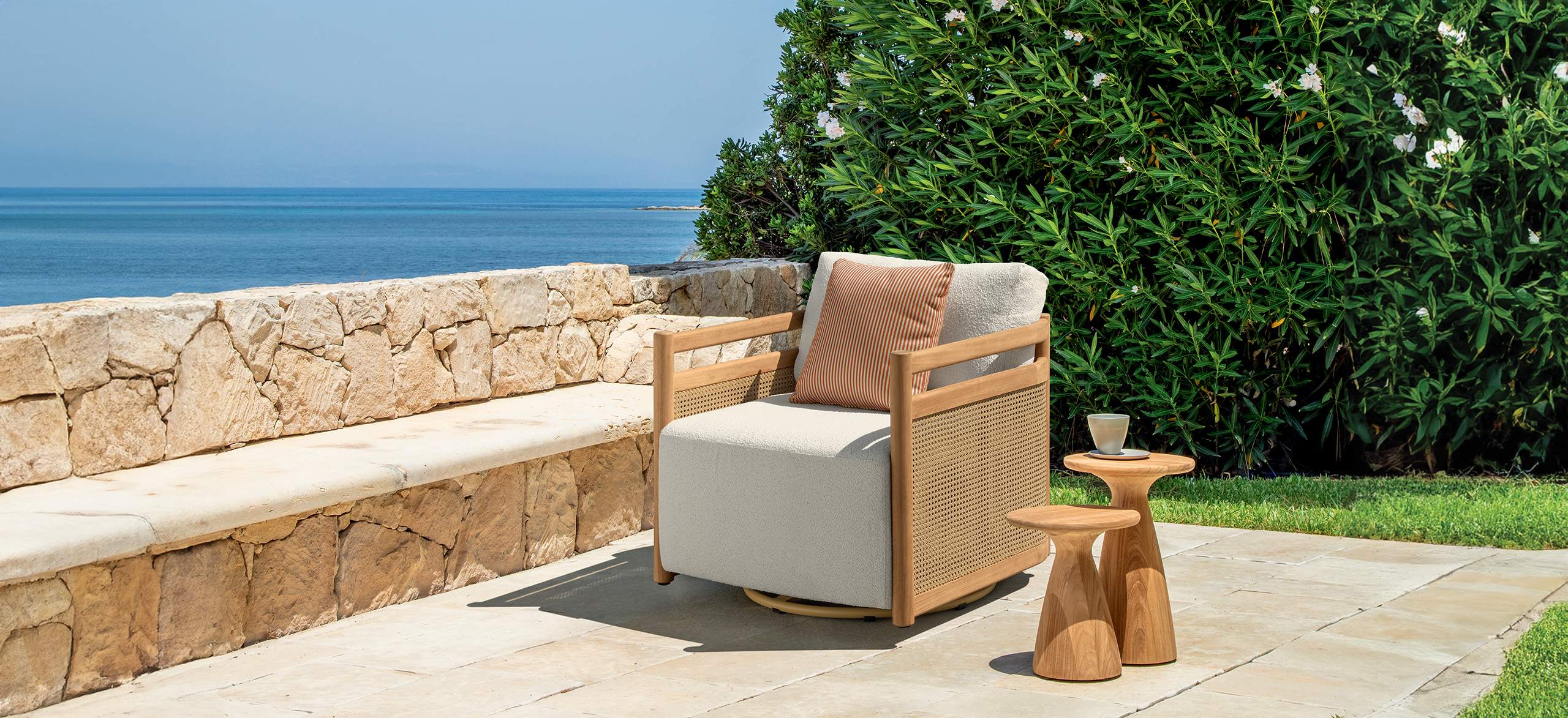 Edwin è una collezione outdoor che celebra la bellezza naturale del legno, combinata a linee pulite e una struttura robusta per garantire durata e comfort. Ogni pezzo è progettato per valorizzare le venature e le sfumature uniche del teak, trasformando gli spazi esterni in ambienti accoglienti e raffinati. L’equilibrio tra tradizione e modernità si riflette nelle forme essenziali, nella scelta del tessuto bouclé e nell’utilizzo dell’elegante intreccio in paglia di Vienna diventato celebre in epoca vittoriana e rielaborato nei secoli successivi, dando vita a pezzi di design dal fascino intramontabile.
