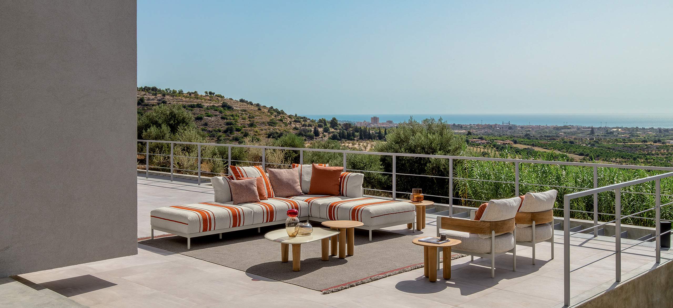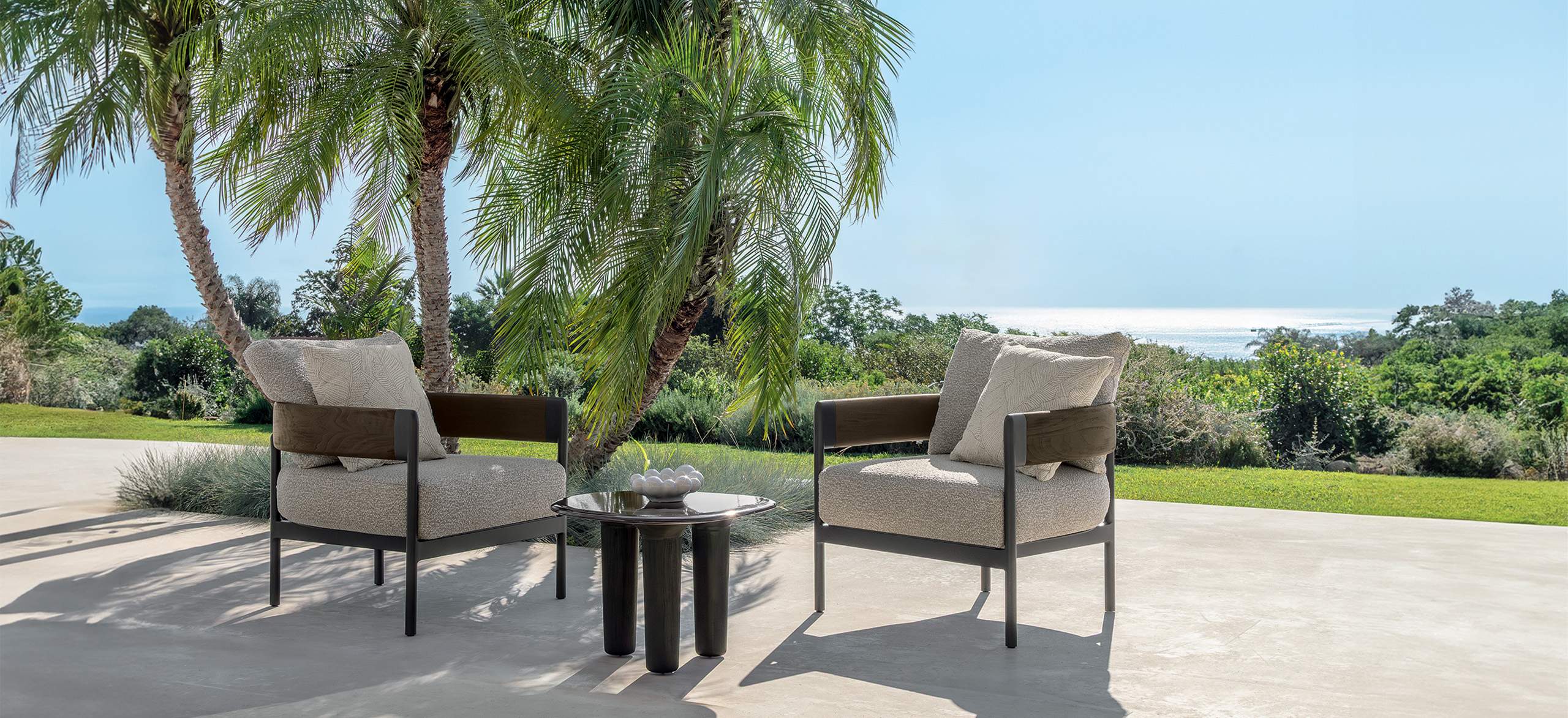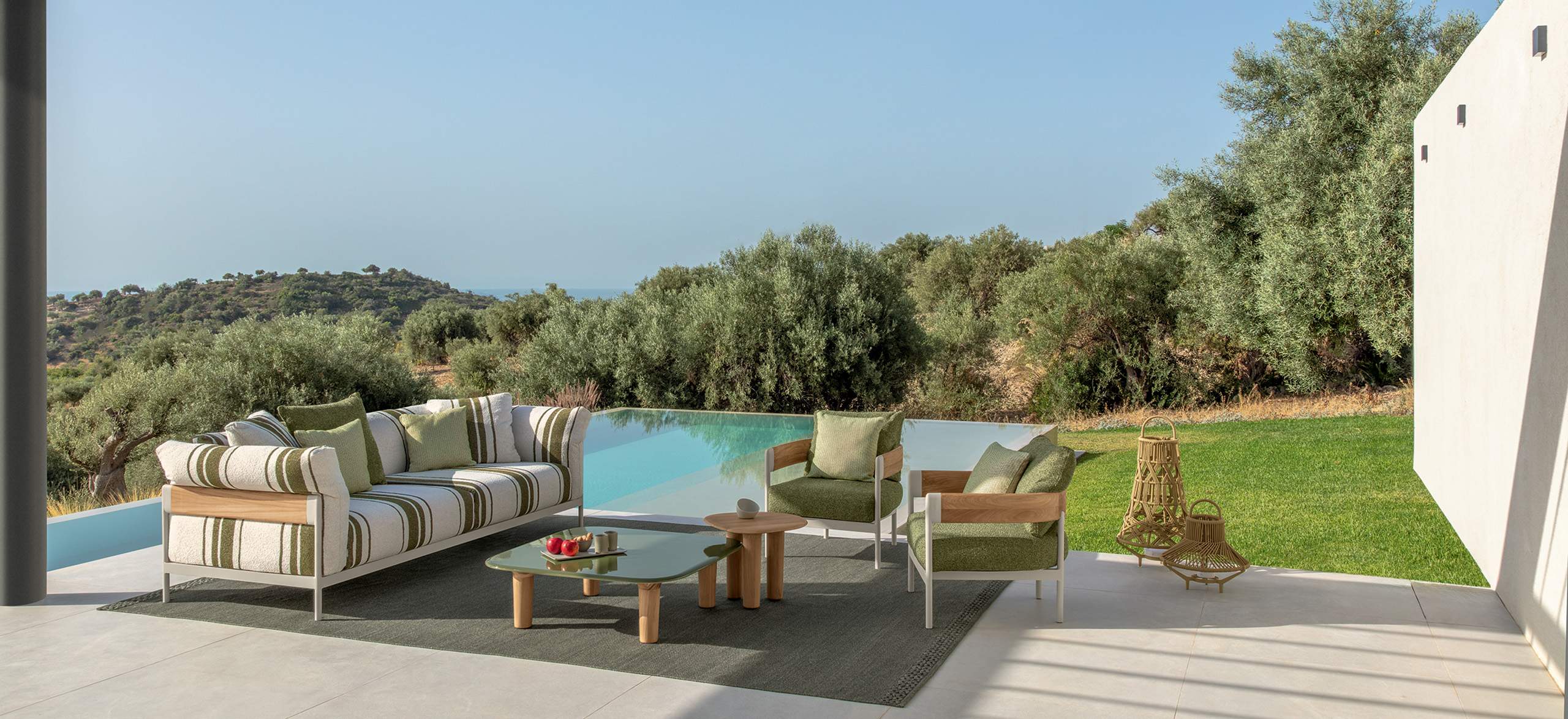 Comfort e multi-materialità sono gli elementi chiave di questa collezione che, come rievoca il nome, vuole trasmettere una sensazione di fluidità, di benessere vissuto lasciando che il tempo per il relax scorra liberamente. Una raccolta di elementi dove i cuscini avvolgenti, abbinati a materiali ricercati e a tessuti a righe dal forte valore decorativo, contribuiscono a portare l’atmosfera dell’indoor negli spazi esterni. La struttura in alluminio, in elegante bianco caldo o il più deciso mokka, si integrano armoniosamente con le sinuose lavorazioni di legno, esaltando il know di Talenti nella realizzazione di arredi che fondono materiali apparentemente lontani. Il risultato è un mix raffinato e naturale tra il calore tradizionale del teak e la forza estetica degli elementi laccati, in grado di formare una famiglia di prodotti completa e versatile che include divani componibili, poltrone lounge, tavoli e sedute dining e soluzioni relax.