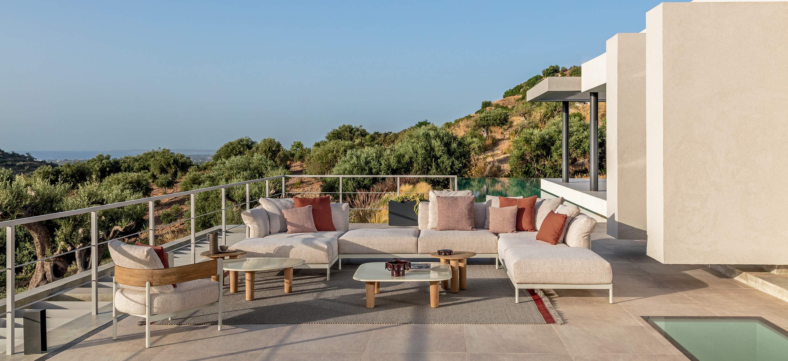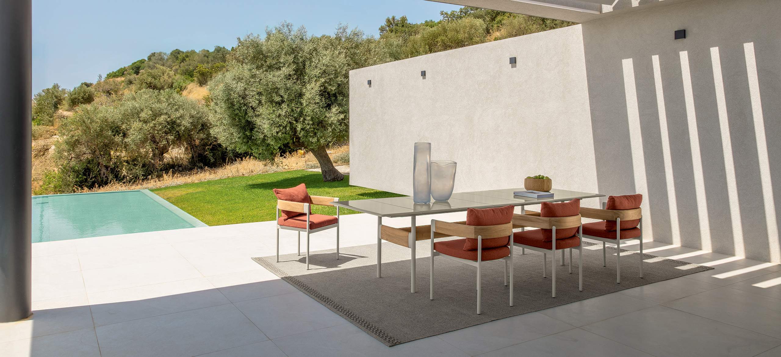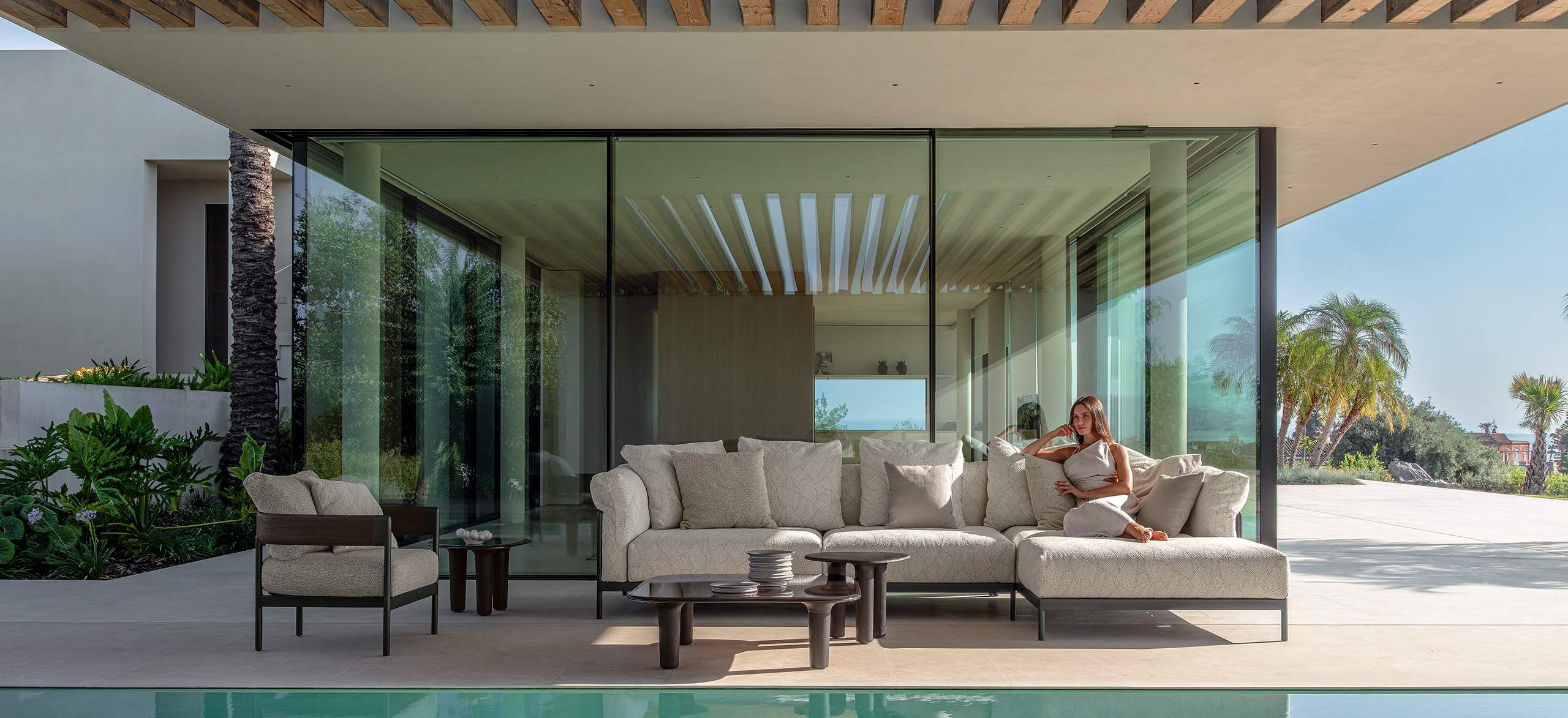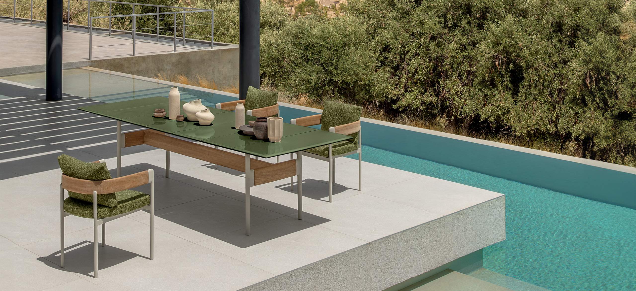 Comfort e multi-materialità sono gli elementi chiave di questa collezione che, come rievoca il nome, vuole trasmettere una sensazione di fluidità, di benessere vissuto lasciando che il tempo per il relax scorra liberamente. Una raccolta di elementi dove i cuscini avvolgenti, abbinati a materiali ricercati e a tessuti a righe dal forte valore decorativo, contribuiscono a portare l’atmosfera dell’indoor negli spazi esterni. La struttura in alluminio, in elegante bianco caldo o il più deciso mokka, si integrano armoniosamente con le sinuose lavorazioni di legno, esaltando il know di Talenti nella realizzazione di arredi che fondono materiali apparentemente lontani. Il risultato è un mix raffinato e naturale tra il calore tradizionale del teak e la forza estetica degli elementi laccati, in grado di formare una famiglia di prodotti completa e versatile che include divani componibili, poltrone lounge, tavoli e sedute dining e soluzioni relax.