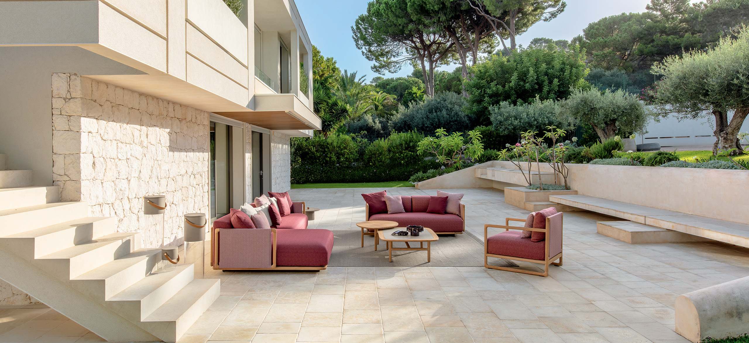 Dalla mente eclettica di Marco Acerbis, nasce Jun, una collezione che combina l’eleganza del teak e le sedute generose ma compatte, in pieno stile orientale. I profili in legno e le sedute comunicano grazie ai rivestimenti in tessuto bouclé tono su tono degli schienali e dei braccioli, facilmente sfoderabili. I tavoli in legno dalle forme irregolari sono impreziositi da piani in gres vetrificato, offrendo un perfetto equilibrio tra comfort e stile, rendendo ogni spazio esterno un’oasi di lusso contemporaneo.