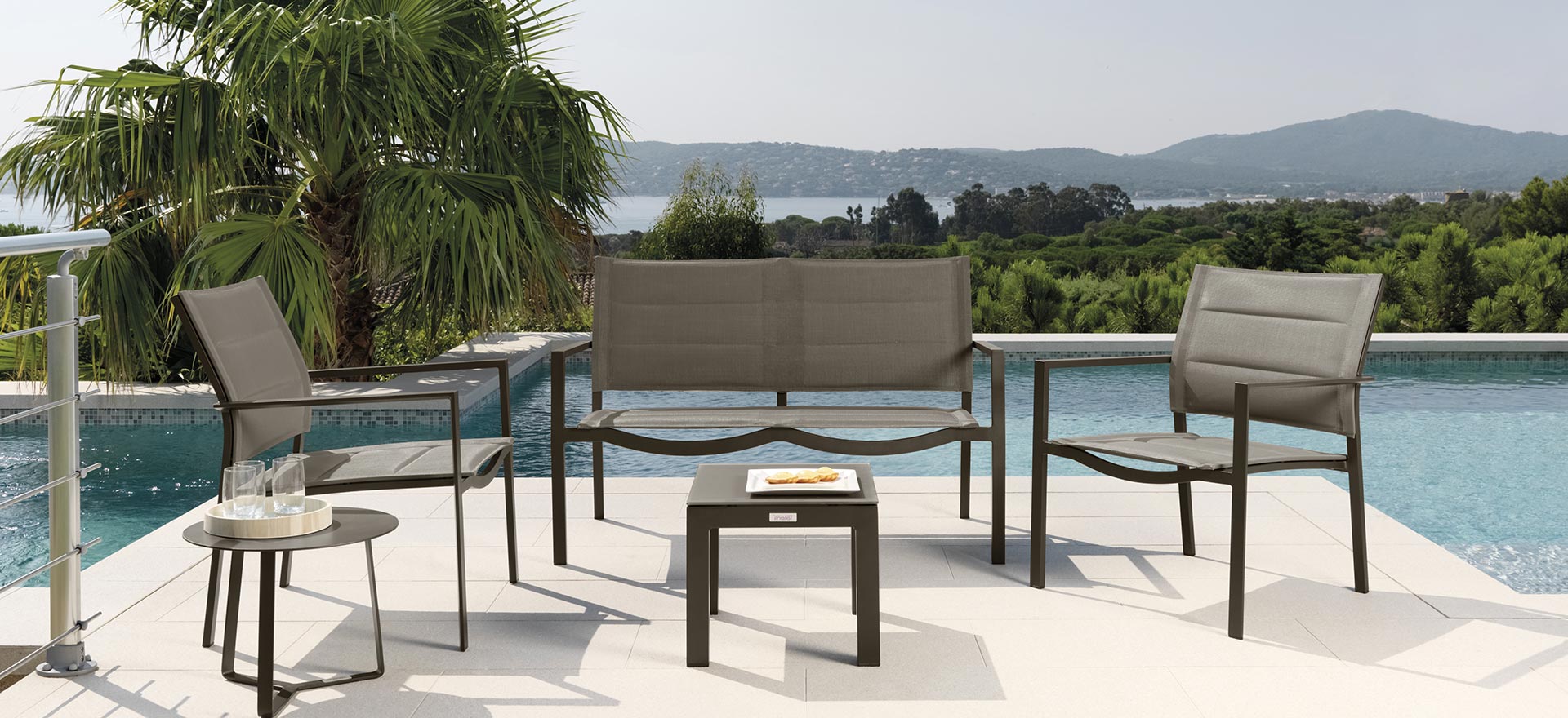 Una tra le collezioni più complete del marchio Talenti. Per il living, il dining ed il relax; tre complementi per rendere il outdoor impeccabile. Concretezza e stile in ogni elemento, dai divani in textilene, ai tavoli in alluminio ed ai lettini per il tuo bordo piscina.