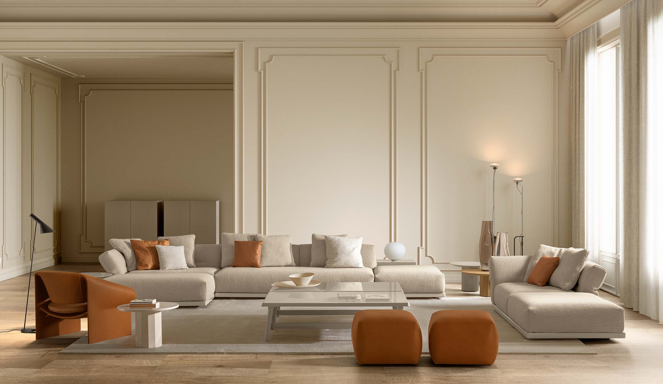 Il pouf ELTON completa la collezione con un elemento versatile e funzionale, pensato per ampliare le possibilità d’uso del divano. Utilizzabile come seduta aggiuntiva, appoggio informale o naturale estensione della composizione, il pouf riprende le forme piene e la cura del dettaglio che caratterizzano l’intera linea. La sua presenza discreta contribuisce a creare un ambiente armonioso e rilassato, offrendo comfort immediato e flessibilità progettuale, in perfetta continuità con lo stile ELTON.