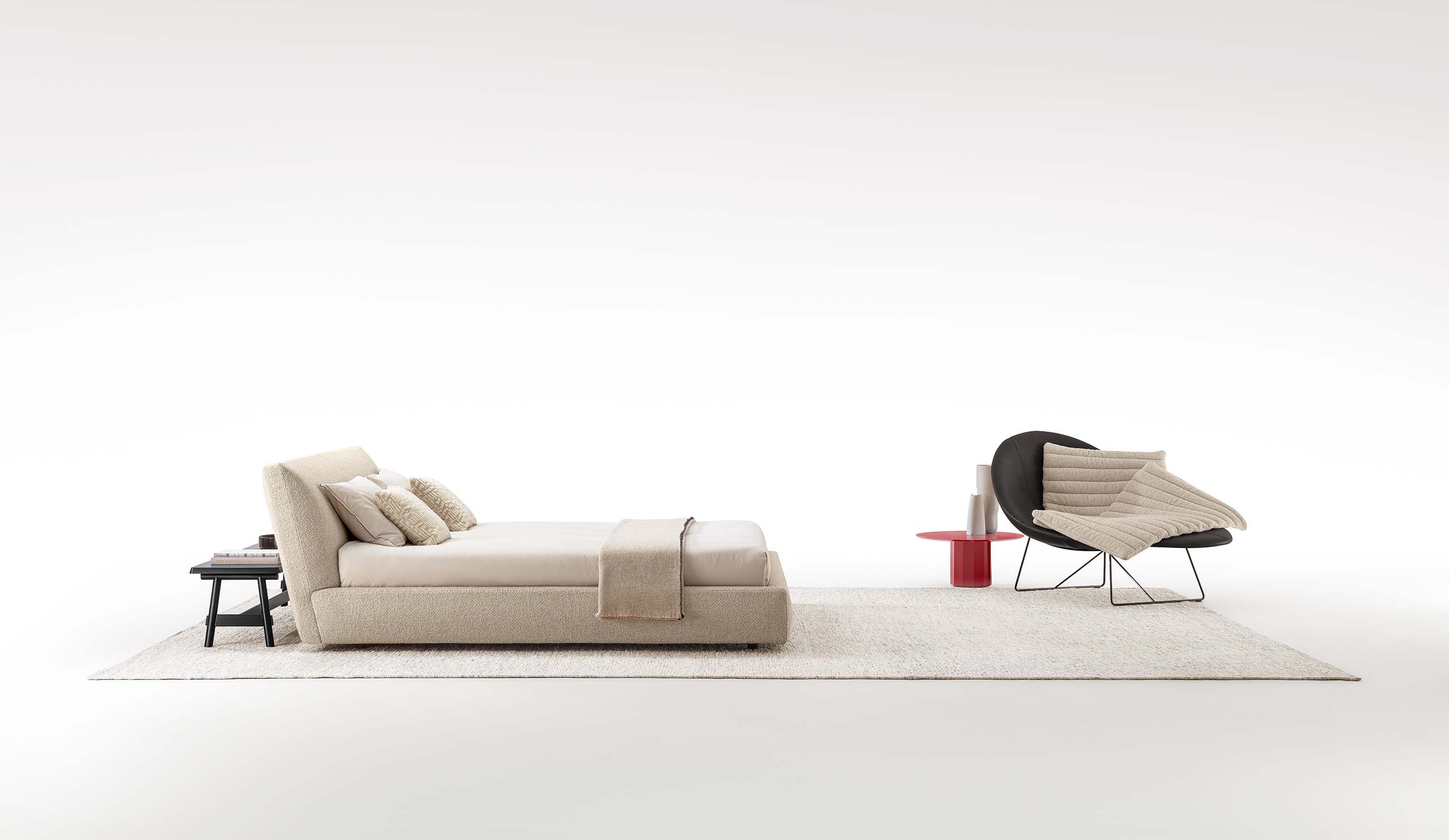 Il letto TAMASHI interpreta la zona notte attraverso un linguaggio rigoroso e armonioso, ispirato all’essenzialità della tradizione giapponese. La testata imbottita, inclinata con delicatezza, poggia su una struttura in legno multistrato e massello, progettata per offrire solidità e comfort duraturo. Le fasce perimetrali in legno multistrato sono arricchite da imbottiture in poliuretano espanso ad alta densità e fibra di poliestere, garantendo un’accoglienza morbida e avvolgente. Il rivestimento, disponibile in tessuto o pelle, esalta la pulizia delle forme. Il supporto rete in acciaio zincato e i piedini in alluminio pressofuso con appoggio a terra su puntali in polimero termoplastico completano un progetto equilibrato, pensato per un riposo profondo e consapevole.