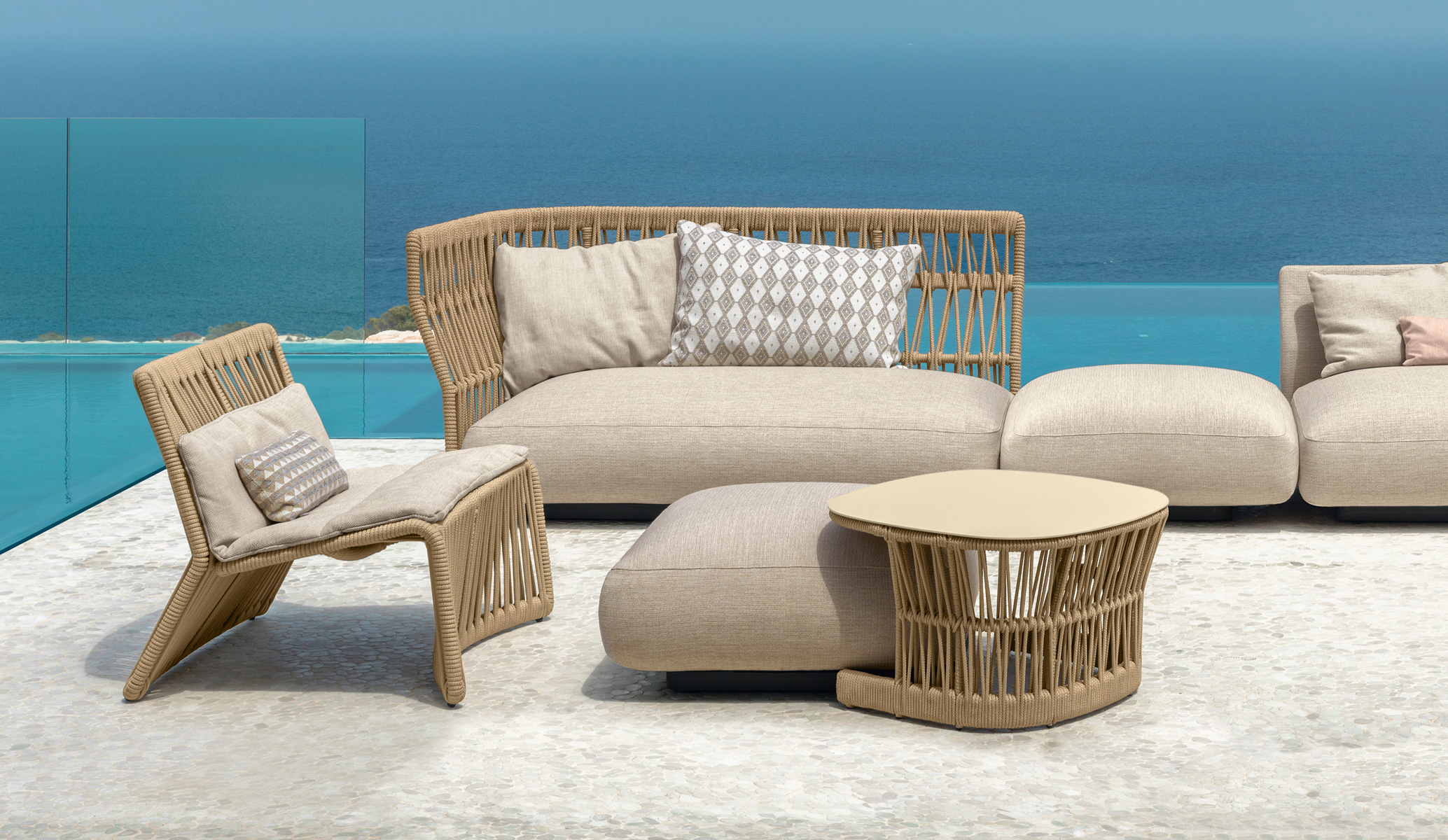 Cuscineria sfoderabile, imbottitura realizzata in quick dry foam e rivestita con tessuti studiati per l’outdoor impermeabili è disponibile nelle colorazioni