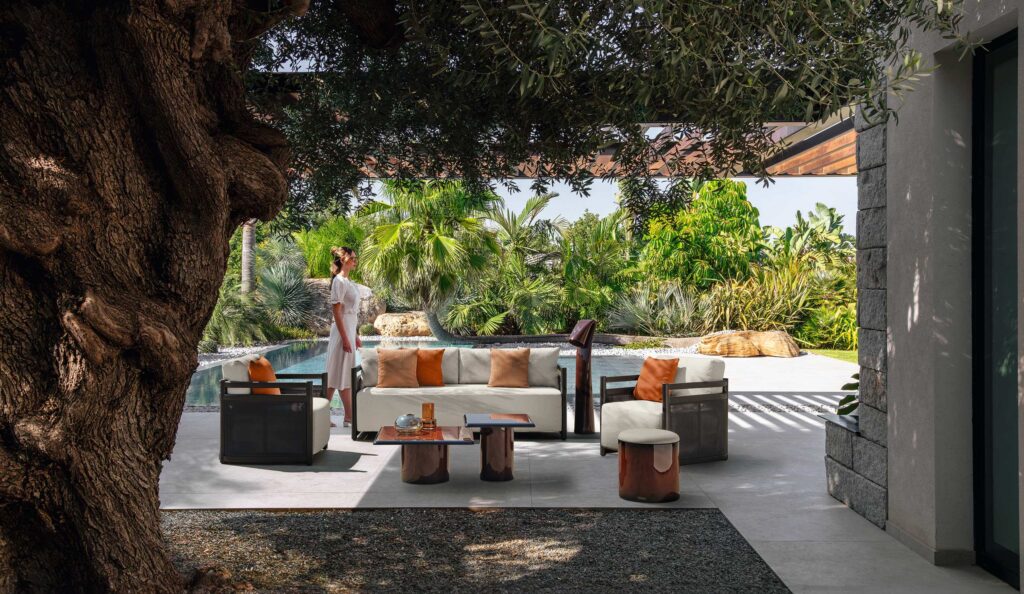 La poltrona living Edwin Alu riprende il concept del sofa ma ne riduce le dimensioni, diventando un elemento d’arredo stand-alone in grado di caratterizzare il proprio outdoor. In alluminio mokka o bianco caldo, con struttura impreziosita da una fibra ultra slim, sulle stesse tonalità, estremamente resistente agli agenti atmosferici, si adatta ad ambienti più tradizionali come a quelli più moderni e avanguardisti. Il tessuto bouclè in bianco panna, rende la poltrona un arredo versatile ma di grande eleganza.