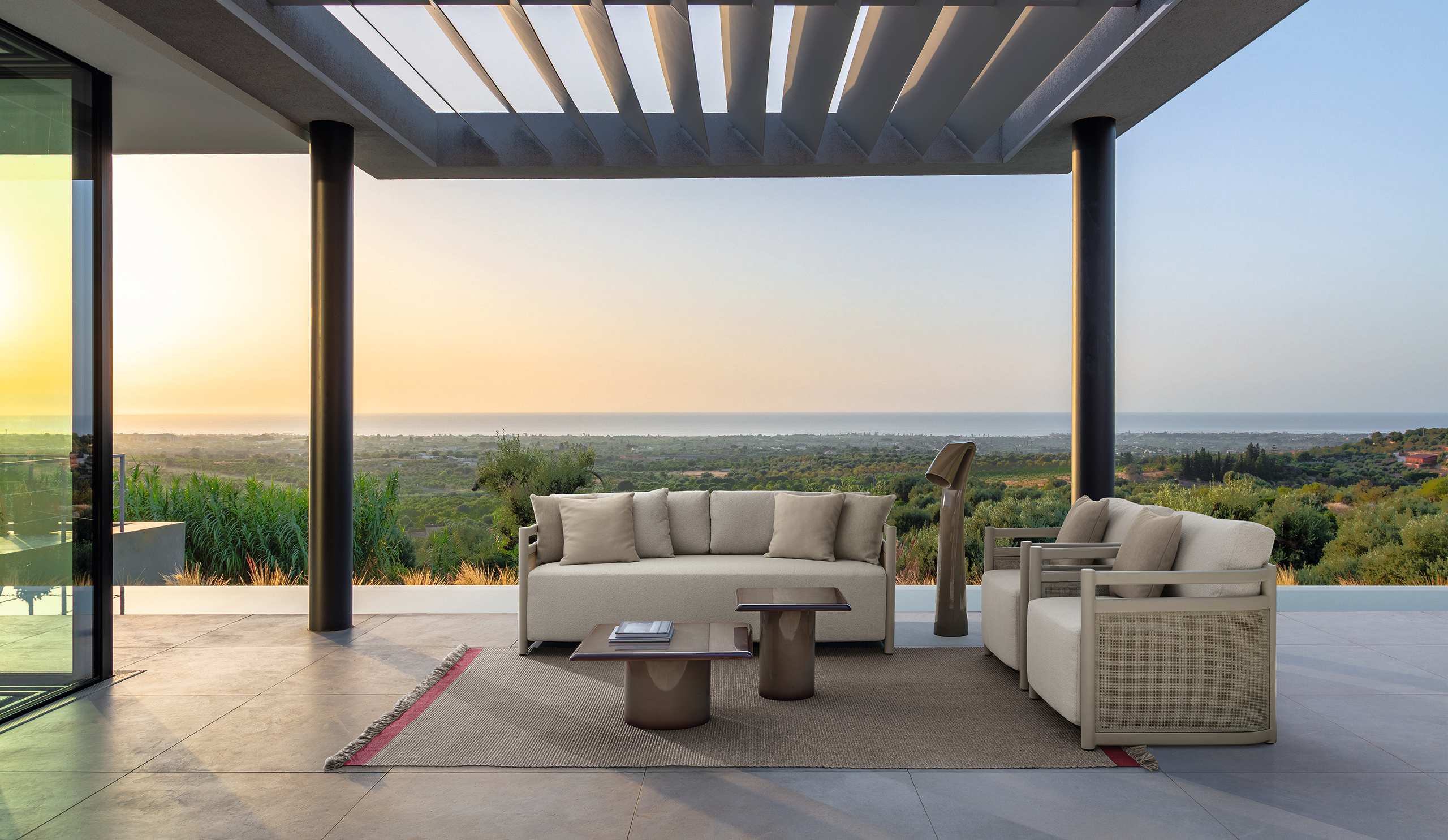 Il divano Edwin Alu è un modulo compatto e accogliente con struttura in alluminio impreziosita da un intreccio che riprende le lavorazioni in vimini, ma che si presta per l’utilizzo outdoor grazie alla composizione resistente all’usura dei filati ultra slim che ne compongono la fibra. Cuscinerie ampie e regolari, in tessuto bouclé sui toni della panna, in abbinamento alla struttura in elegante color mokka o bianco caldo, lo rendono perfetto per l’utilizzo in ambienti neutri o molto caratterizzati e facilmente contestualizzabile per dimensioni e line essenziali.