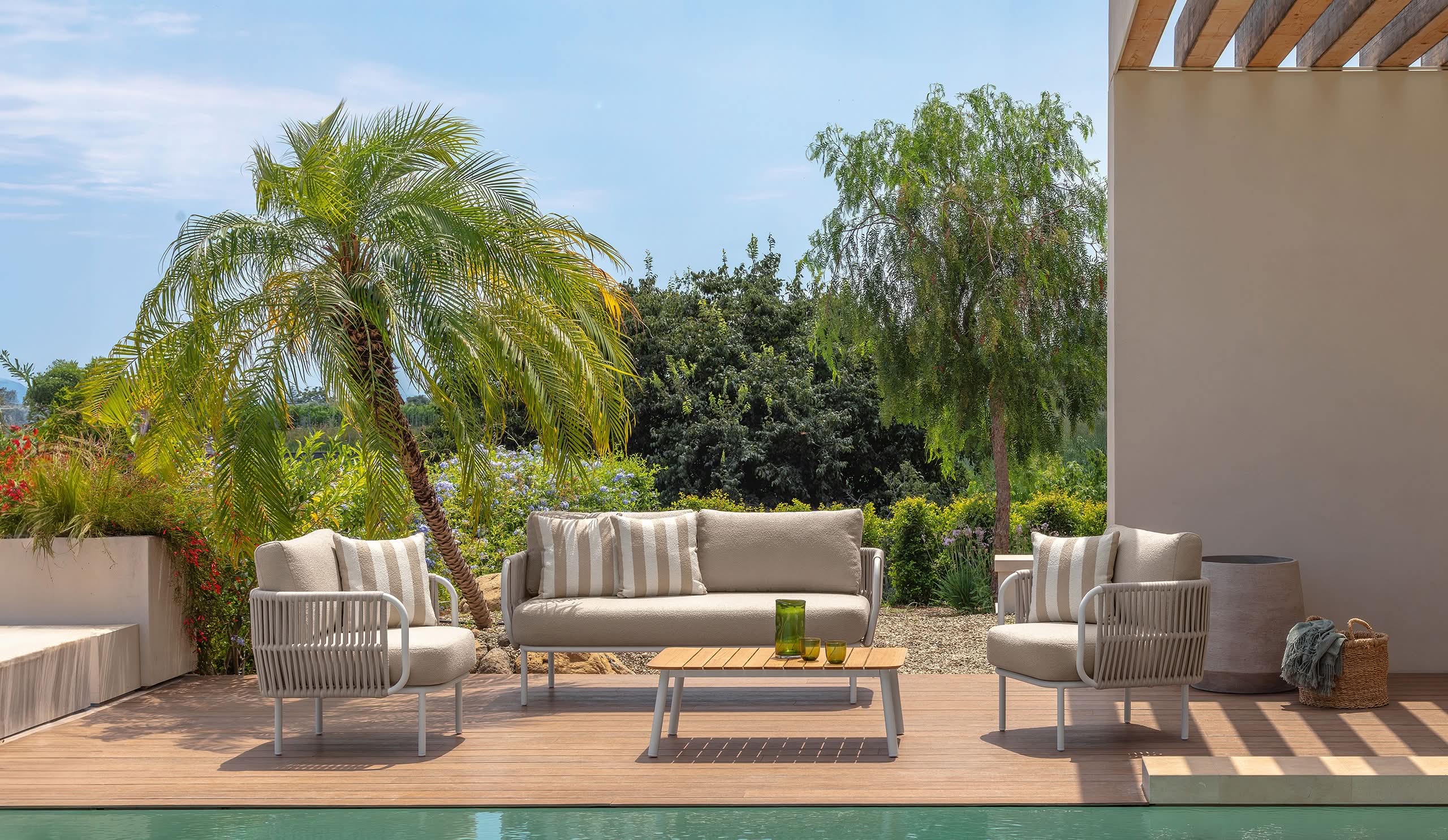 Perfetto per terrazze, giardini e spazi lounge, interpreta con naturalezza l’eleganza contemporanea dell’outdoor.