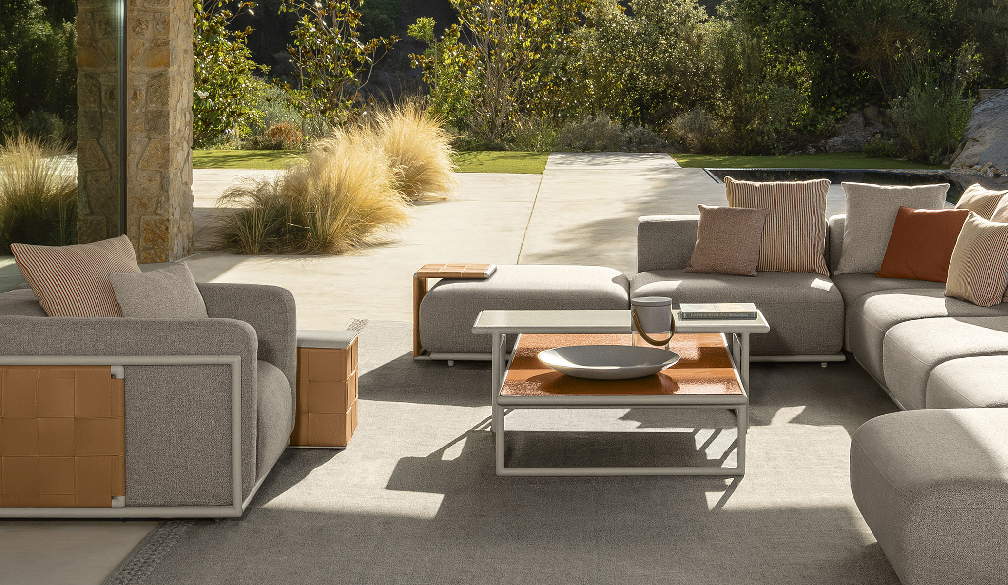 Il pouf Tressé emana al contempo solidità e comfort. Il suo design sofisticato è la combinazione di una leggera struttura tubolare in alluminio con la cuscineria soffice e imponente. Declinato nelle varianti cromatiche grigio seta, fango e terra di Siena, questo complemento d’arredo si adatta con eleganza a qualsiasi ambiente esterno e zona living.